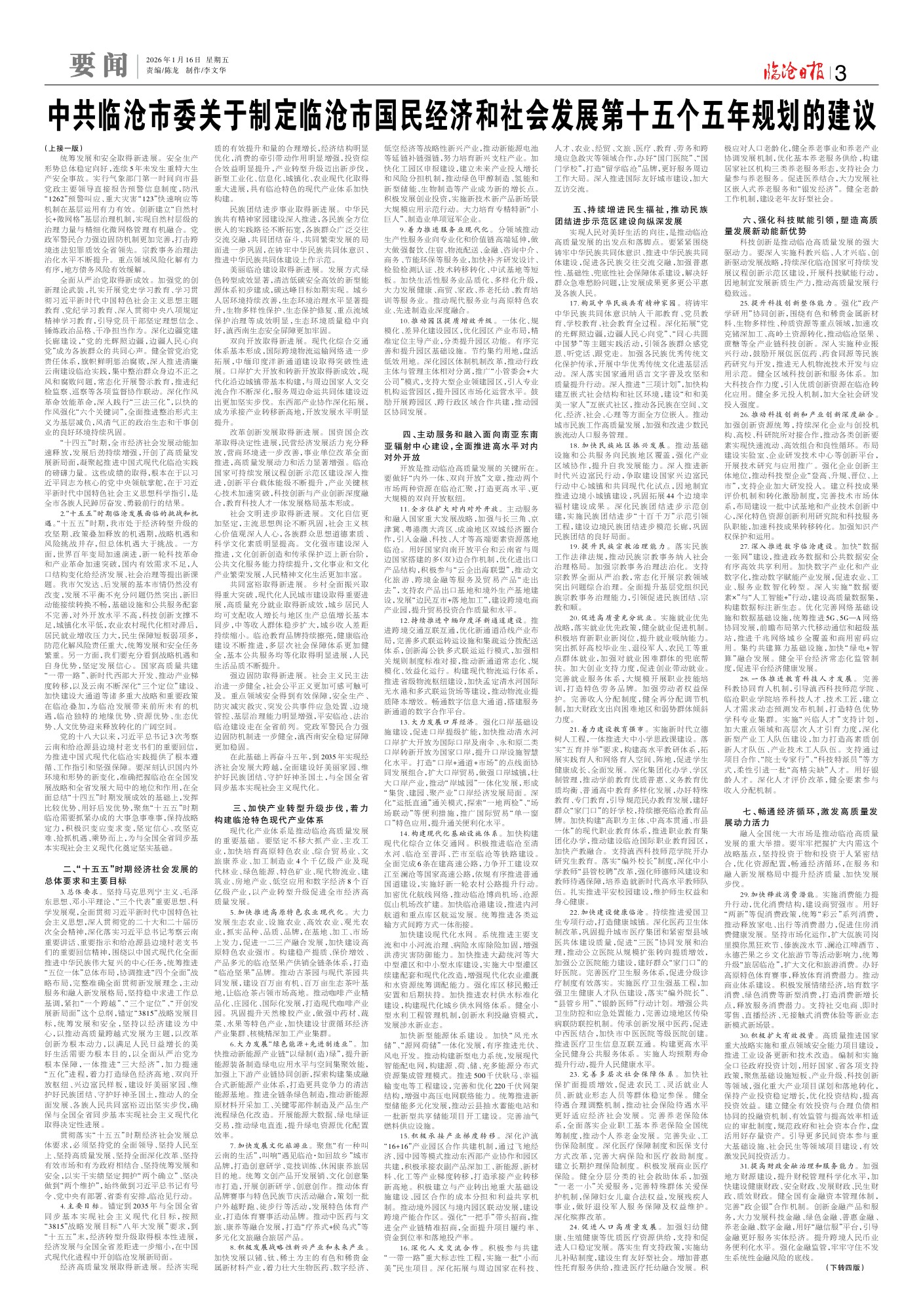 中共临沧市委关于制定临沧市国民经济和社会发展第十五个五年规划的建议