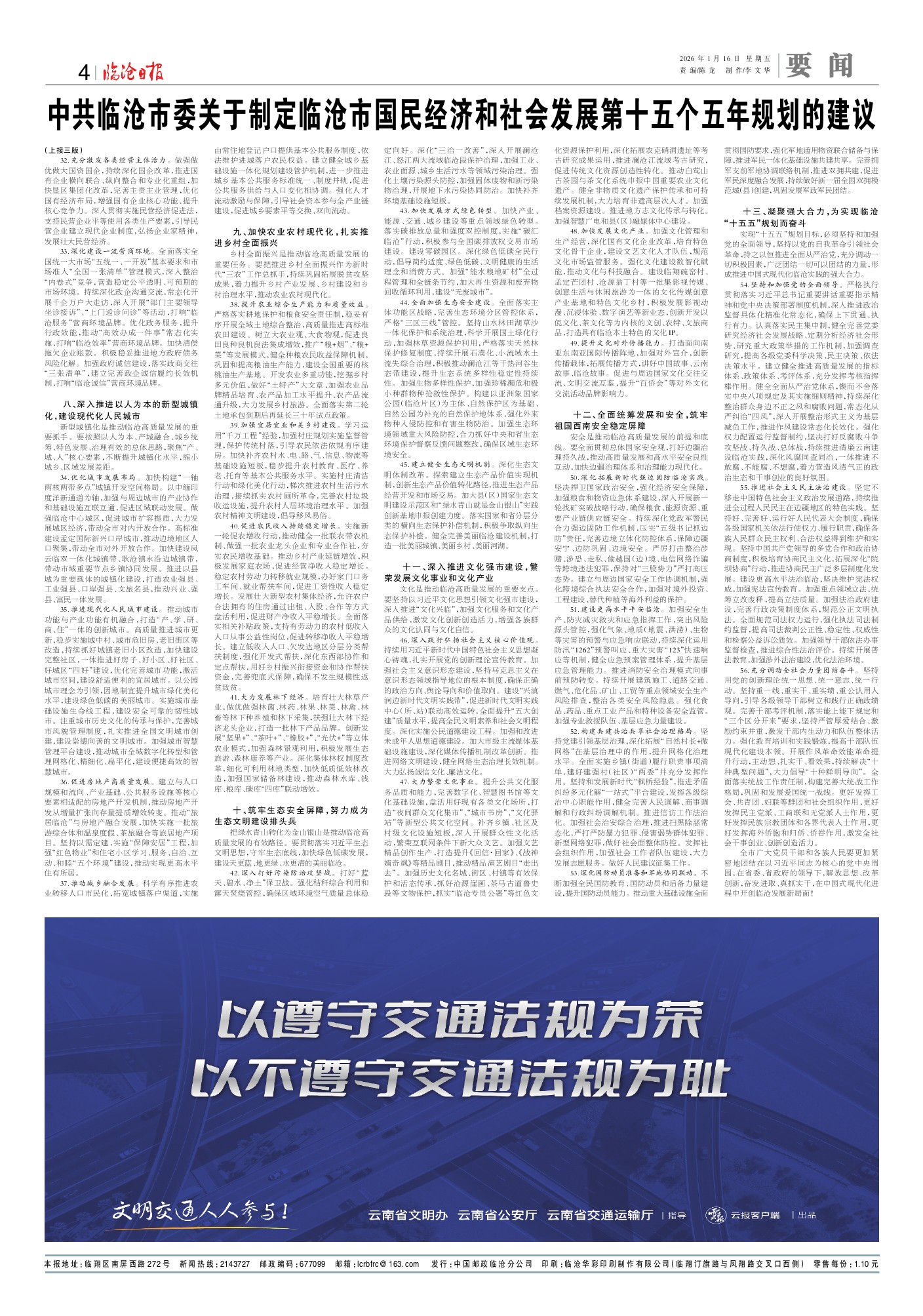 中共临沧市委主管主办 临沧市融媒体中心 临沧日报社出版