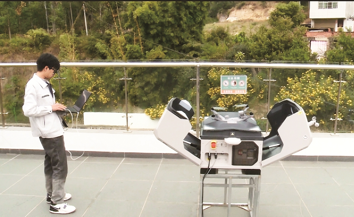 图为工作人员在调试设备。
