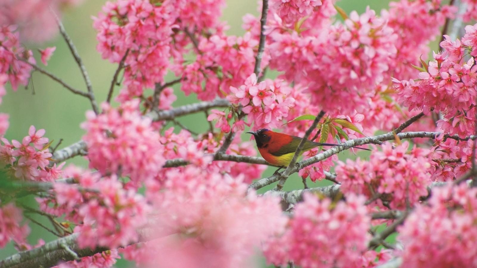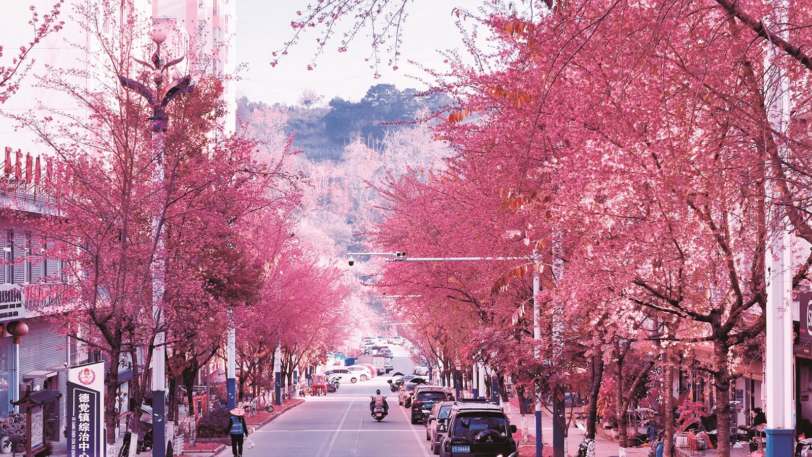 踏入这片土地,仿佛跌入一幅流动的油画。车行在山间公路,窗外是连绵起伏的青山,是忽然闯入眼帘的一片粉色——冬樱花,开了。粉白的冬樱花缀满枝头,轻盈如羽,在微风中簌簌摇曳,仿佛一树树飘落的云霞。
