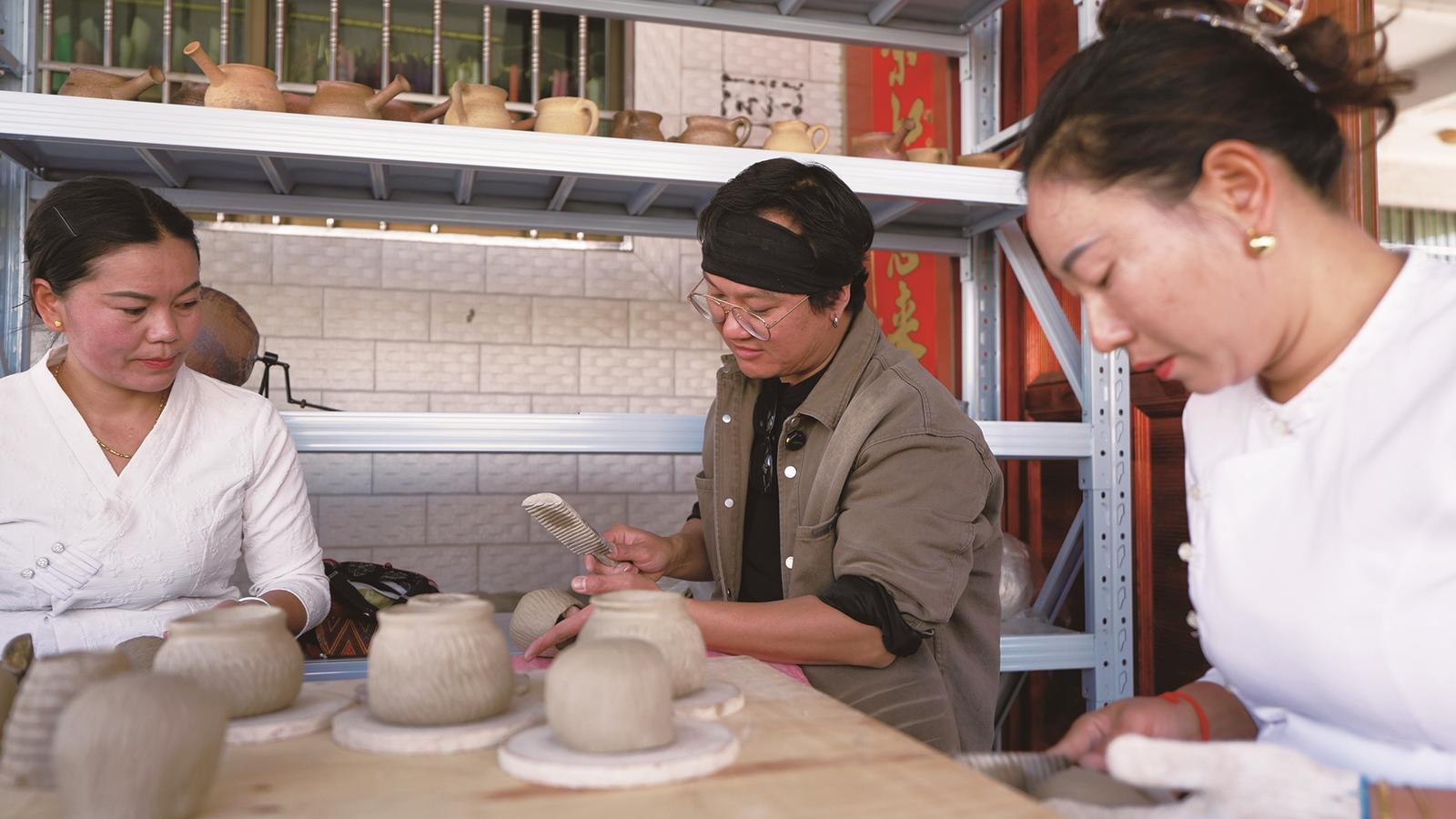 今年1月,“双江申活艺术傣族传统制陶非遗工坊暨非遗人群景亢研培基地”在双江拉祜族佤族布朗族傣族自治县允俸社区景亢组揭牌成立,以“非遗+企业+农户”模式,推动傣族传统土陶技艺转化为富民产业,探索非遗活态传承新路子。
