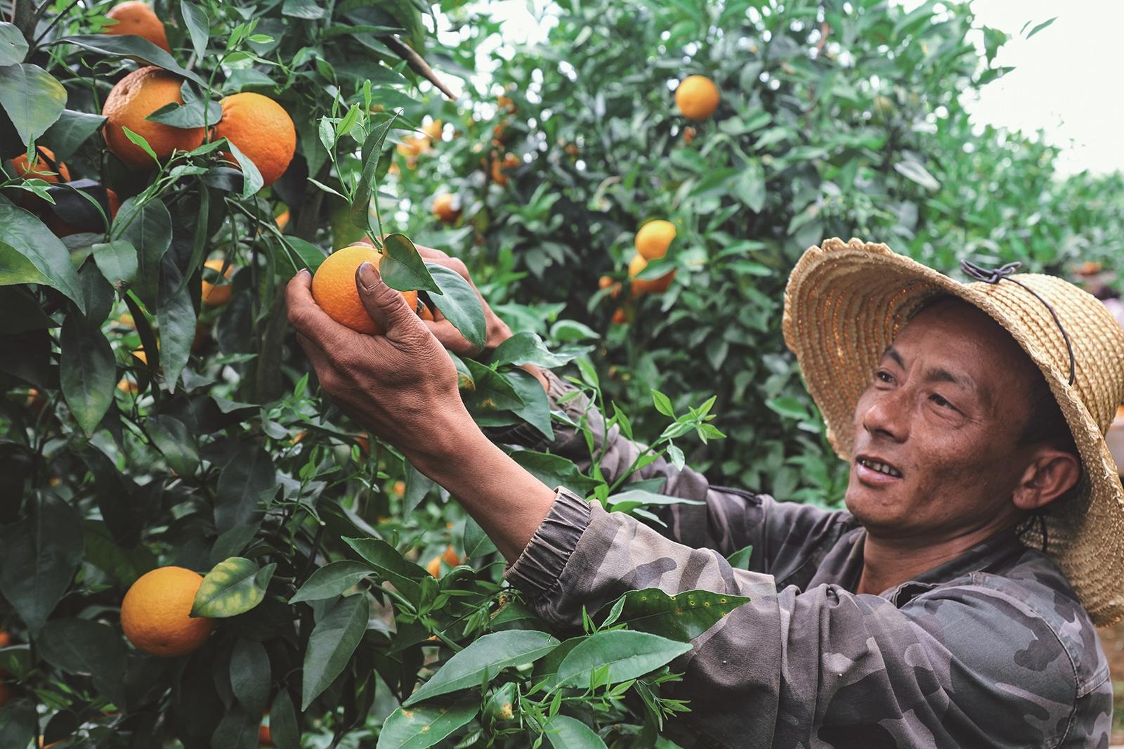 秀塘村村民小组长王德在采摘沃柑。